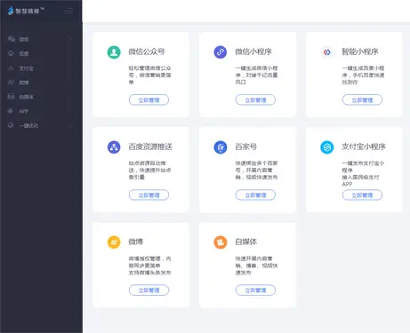 可通过智能推送功能快速将博客、产品资源一键提交搜索引擎及微信、微博等多平台,实时同步。更支持百家号、企鹅号等自媒体平台分发。